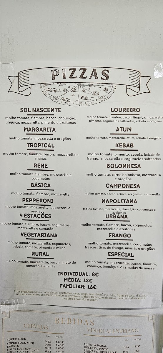 The menu at Pizzaria Sol Nascente is structured around a clear focus on comfort, balance, and consistency, making it easy to understand and satisfying to explore. At the heart of the offering is Nossas Pizzas, which represents the restaurant’s core identity: familiar recipes prepared with care, generous toppings, and dough that feels intentionally crafted rather than rushed. Within this selection, Pizza Basica stands out as a dependable choice that highlights simplicity, relying on well-matched ingredients to deliver a clean and approachable flavor profile. For diners looking for something with more personality, Pizza do Chefe reflects the kitchen’s creative direction, combining bolder elements in a way that feels thoughtful rather than experimental, and offering a sense of the chef’s personal touch. The beverage menu complements the food well, particularly with Cerveja Preta, which adds depth and contrast to the pizzas thanks to its darker, richer character. Taken together, the menu feels cohesive and well-judged, prioritizing clarity over excess while still offering enough variation to appeal to different tastes, making it a solid reflection of the restaurant’s overall culinary approach.